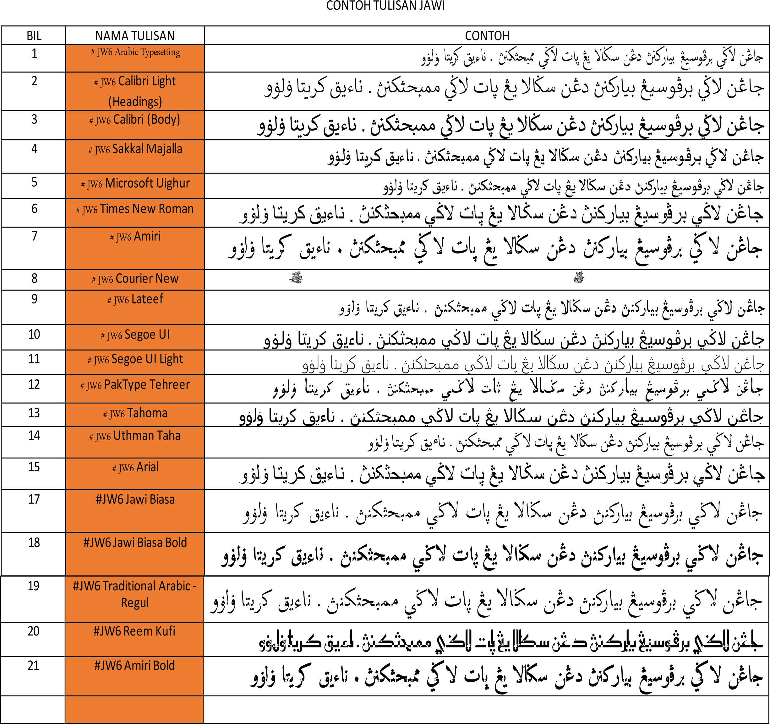 ✅ Font Jawi Tambahan – Koleksi font untuk memperkaya pengalaman menaip Jawi.